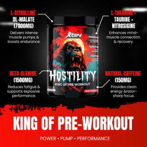 Hostility by XGN is not just a supplement; it’s your new secret weapon. It’s the formula that earns its title as the “King of Pre-Workout,” providing the ultimate combination of Power, Pump, and Performance.