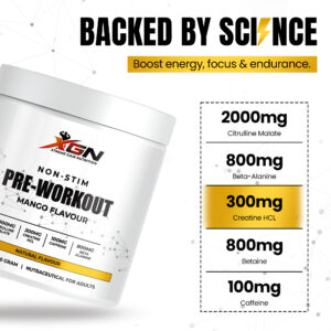 If you want to boost your workout performance but want to avoid high caffeine content or excessive stimulants, the XGN Non-Stim Pre-Workout is the perfect choice for you. This is a powerful formula crafted to help you get the most out of your training without any jitters.
