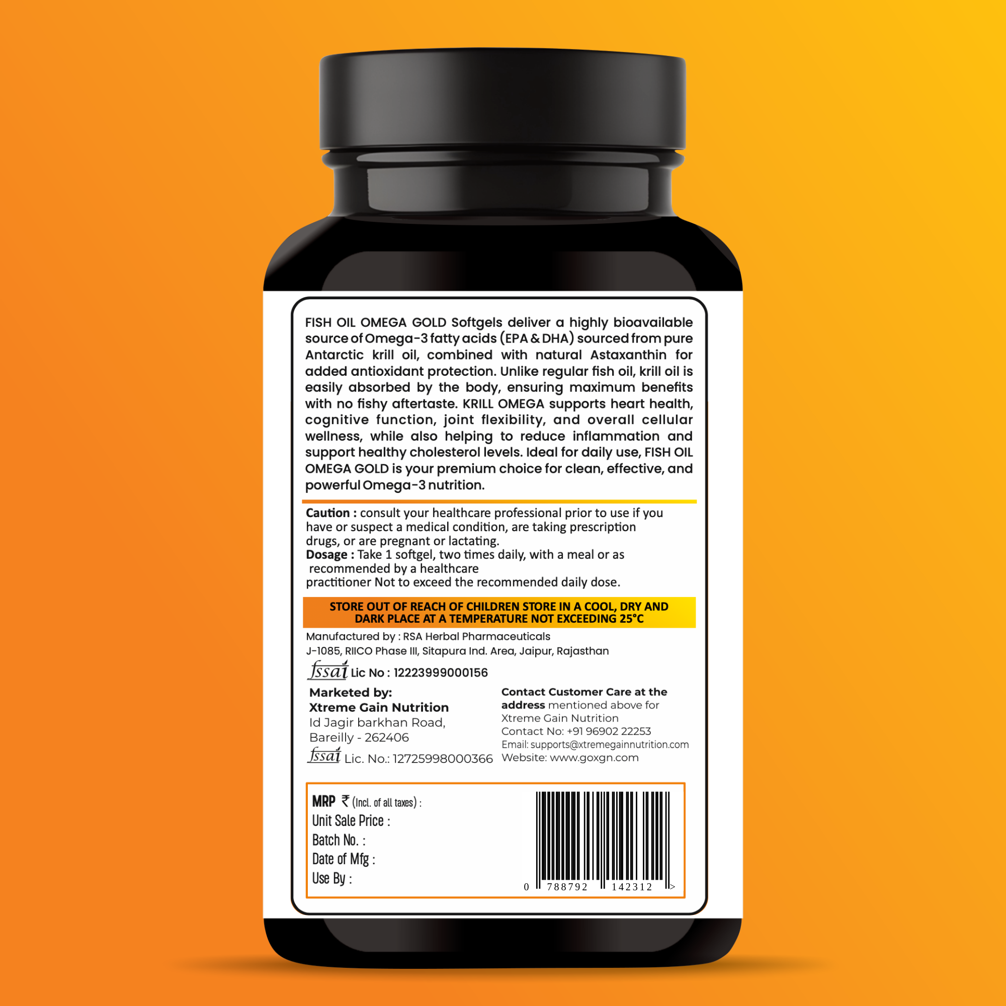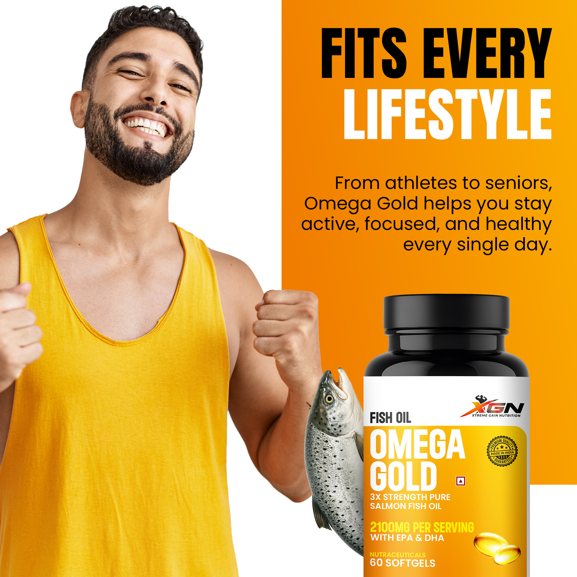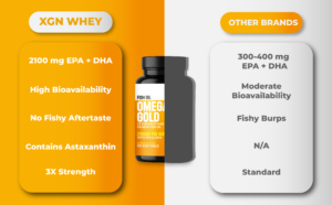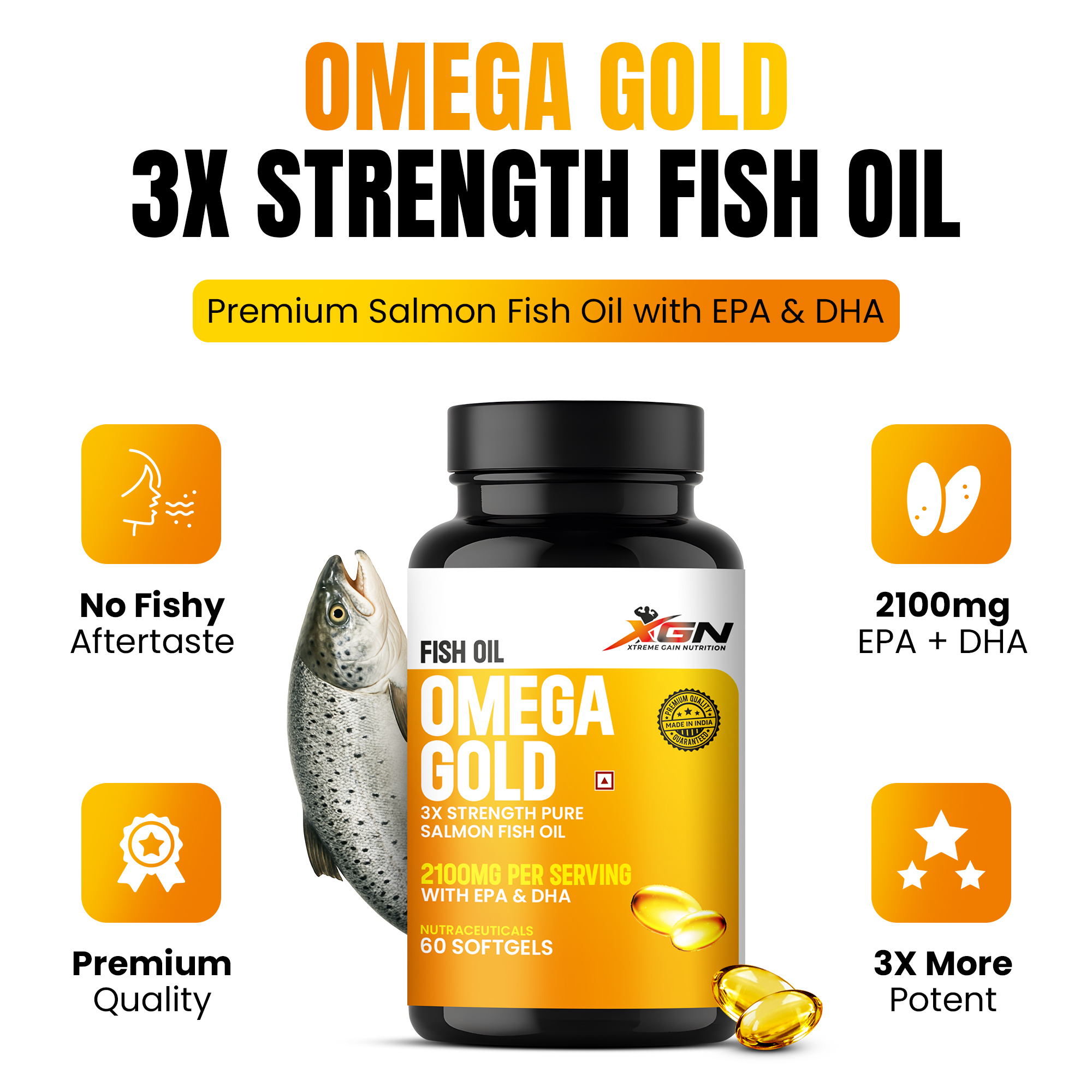 Introducing Omega Gold – a supplement from Xtreme Gain Nutrition that is a true partner for your health! This isn’t just any fish oil; it’s a 3x Strength product made from Pure Salmon Fish Oil, giving you a golden guarantee of good health.